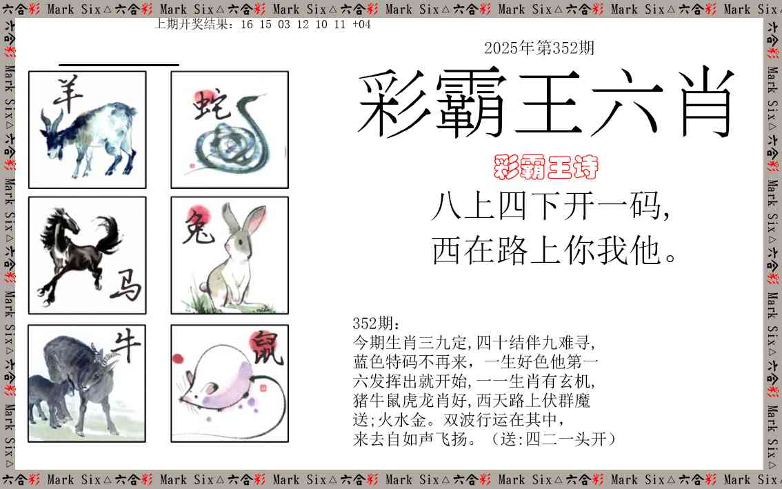 2025-352期正版彩图挂:47;挂牌:白日青天;六肖:兔鼠蛇牛猴龙;火烧:虎